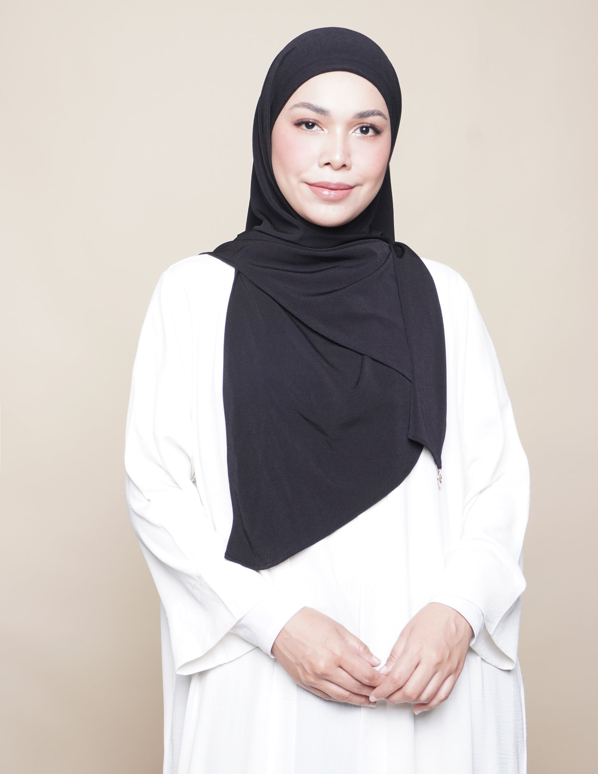 The Jannah, a triangular shawl that stays in place with an attached bonnet inner. Crafted from breathable and wrinkle-resistant Moss Crepe, keeping you cool and comfortable all day long. With the wide and long cutting, it also provides you with better chest and back coverage.