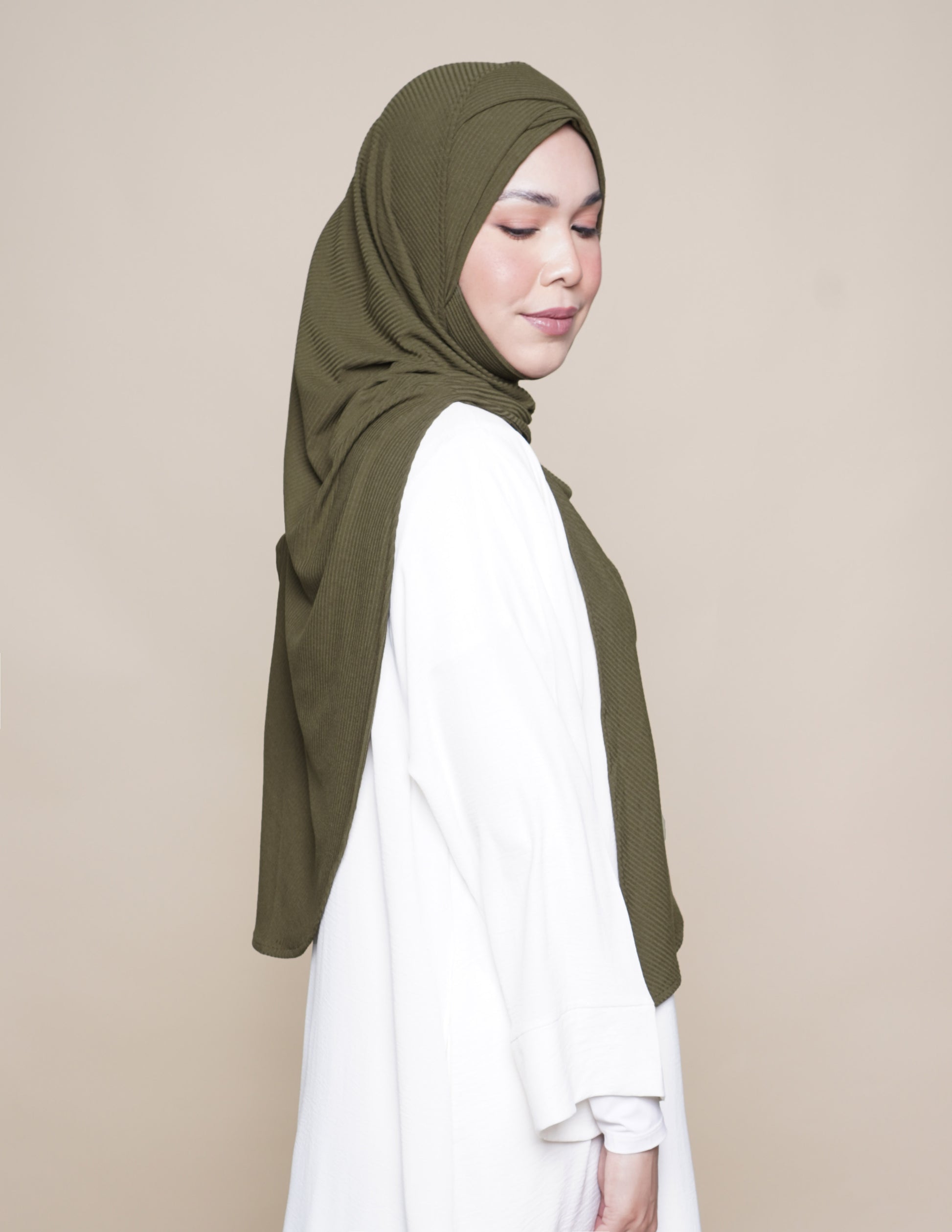 The Sarah semi-instant, a slip-on triangular scarf featuring an integrated turban awning and chin coverage. Crafted from the crowd favourite, wrinkle-resistant ribbed Comfort Knit, this piece combines functionality and durability, making it suitable for a wide range of activities.
