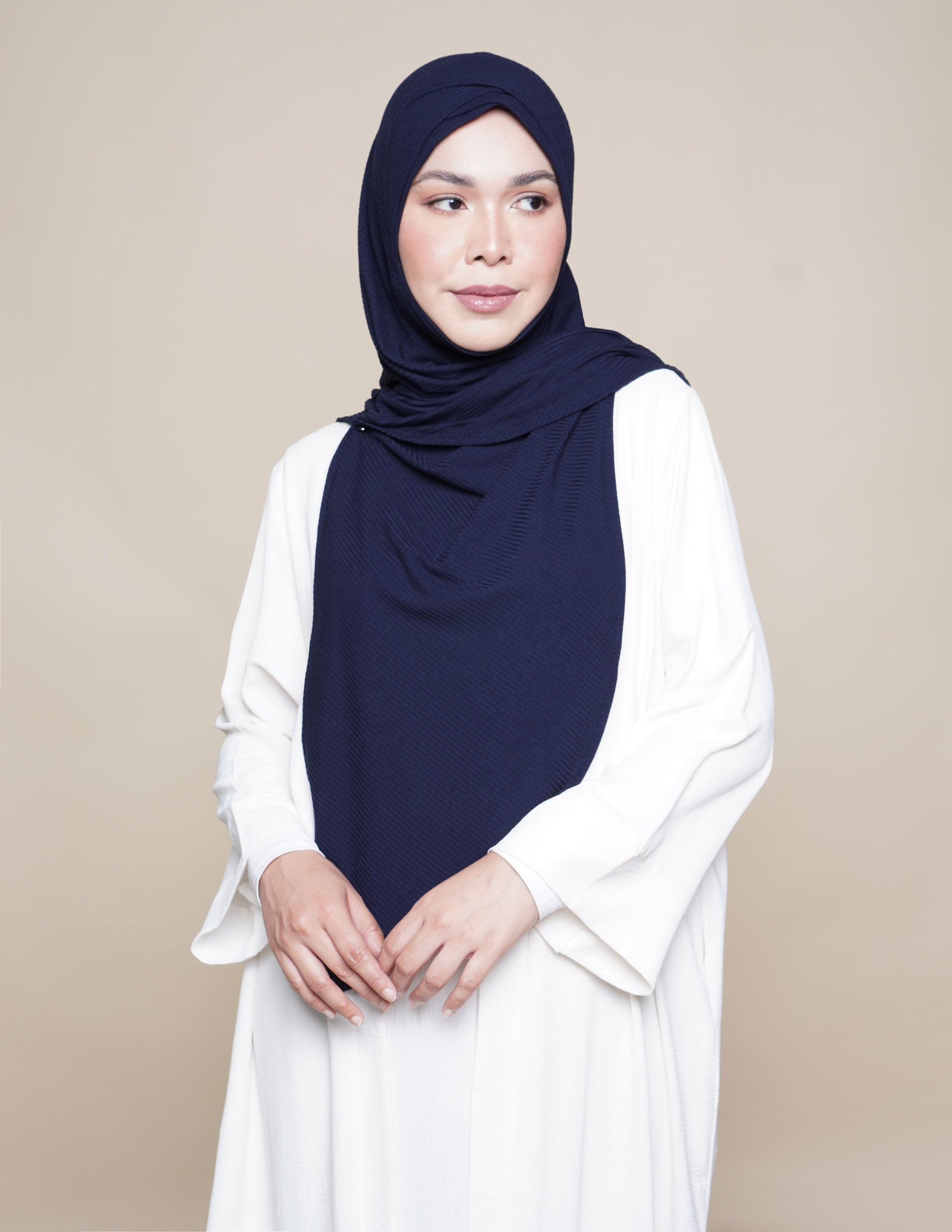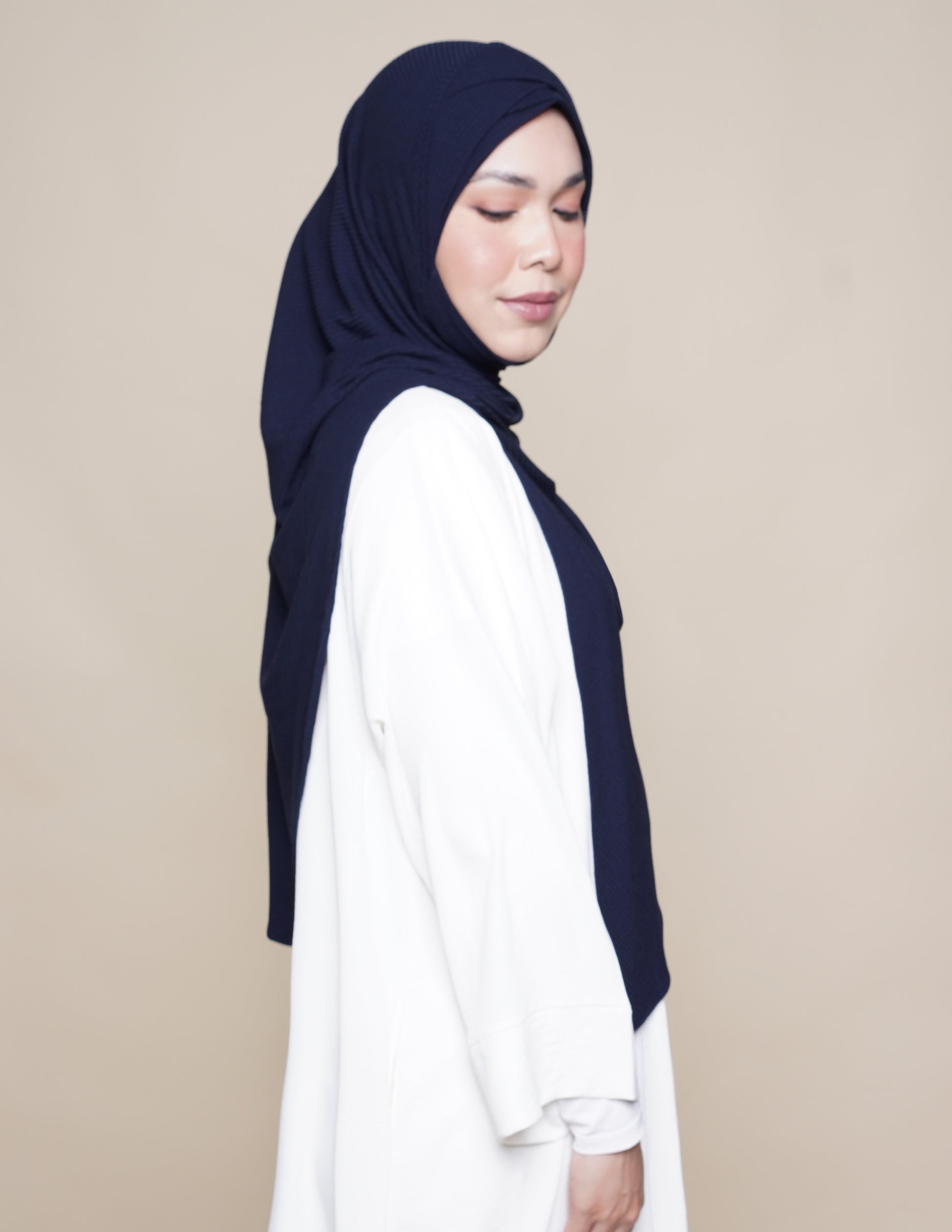 The Sarah semi-instant, a slip-on triangular scarf featuring an integrated turban awning and chin coverage. Crafted from the crowd favourite, wrinkle-resistant ribbed Comfort Knit, this piece combines functionality and durability, making it suitable for a wide range of activities.