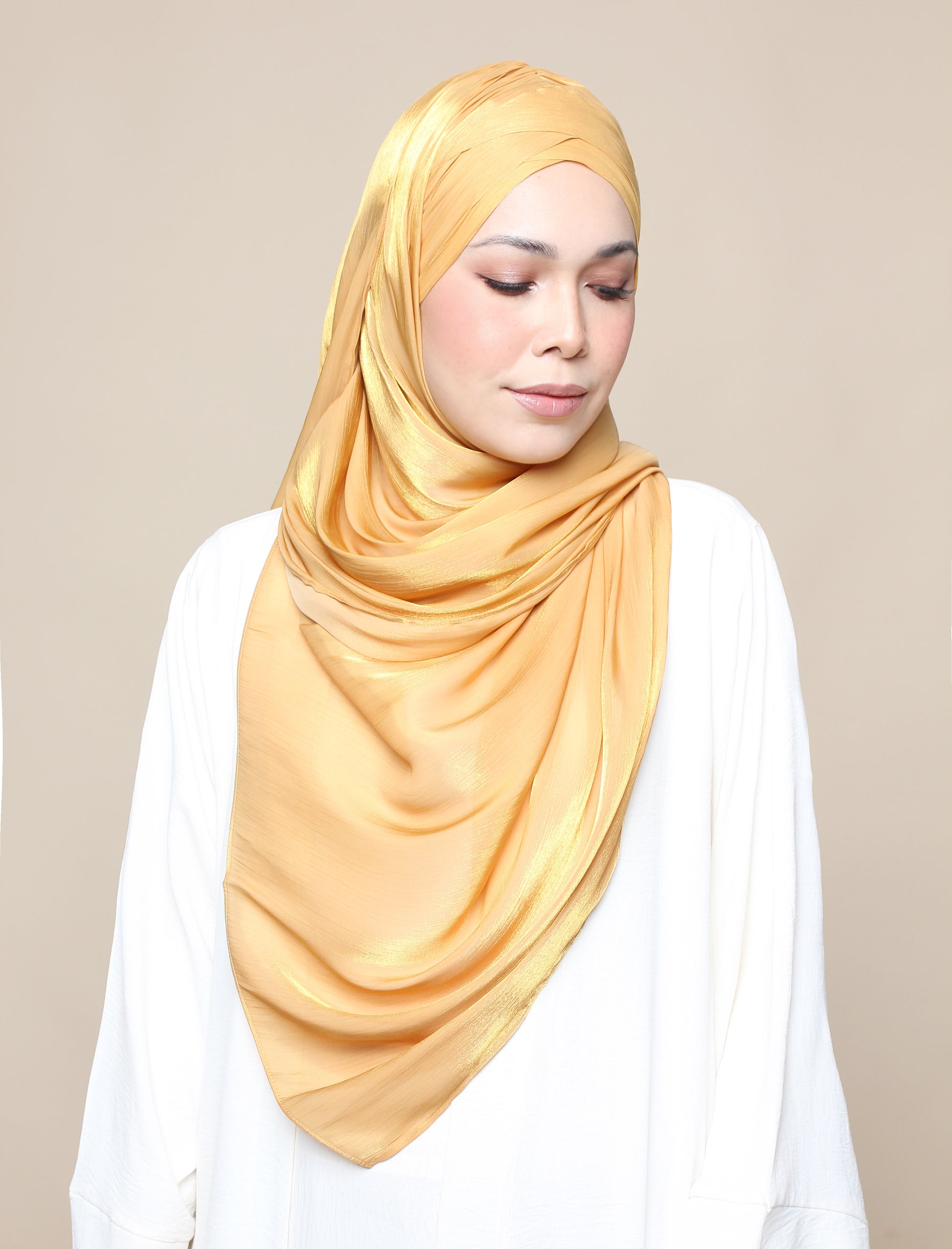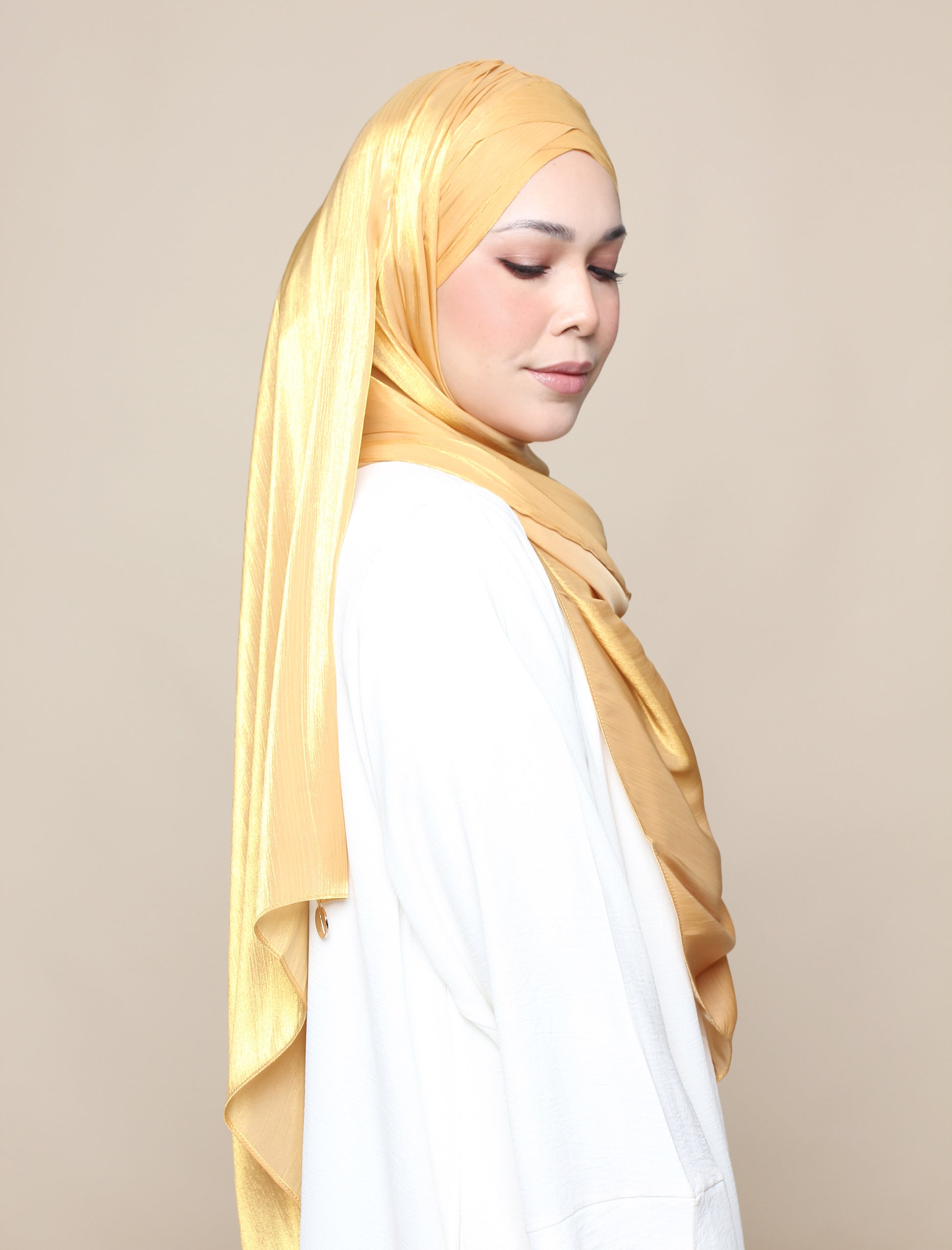 Indulge in luxurious elegance with our Shimmer Satin Lux Square Shawl. Lightweight and cooling, the micro pleats creates effortless drape and requires minimal ironing, making it the perfect accessory for Eid.